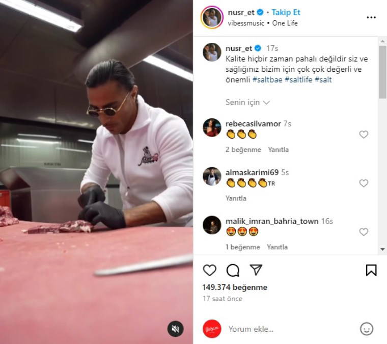 Sosyal medya hesabından bir video paylaşan Nusret açıklamasına da “Kalite hiçbir zaman pahalı değildir siz ve sağlığınız bizim için çok çok değerli ve önemli” yazdı.