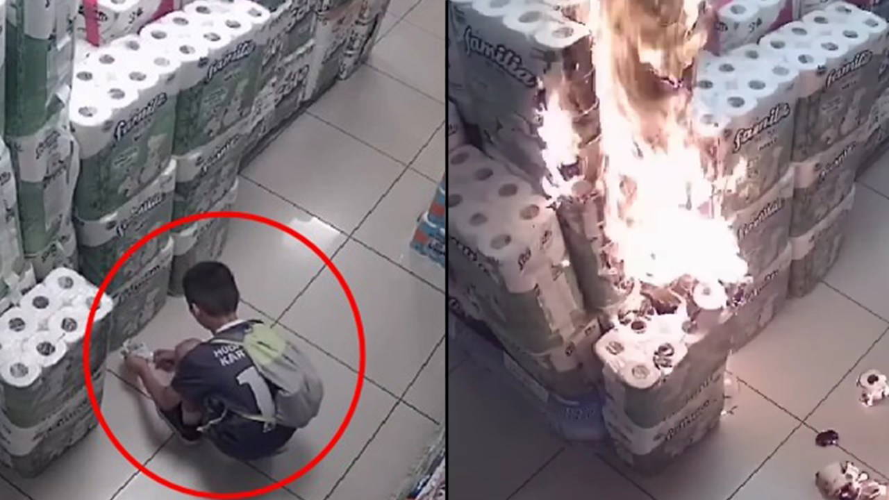 Olay, 12 Eylül saat 14.30 sıralarında Nilüfer ilçesi Fatih Sultan Mehmet Caddesi’ndeki bir zincir marketin şubesinde meydana geldi. Markete giren çocuk, peçetelerden oluşan ürünlerin arkasındaki raftan etiket koparıp, elindeki çakmakla yaktı.