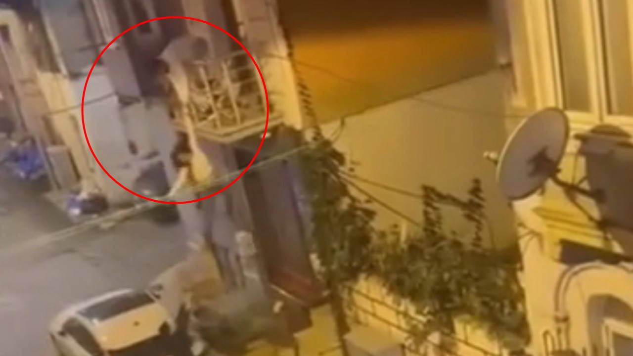 Beyoğlu’nda balkondan atlamak isteyen kadını eşi kollarından yakaladı; düşüp yaralandı. Ancak aşağıya sarkan kadın yere düştü.