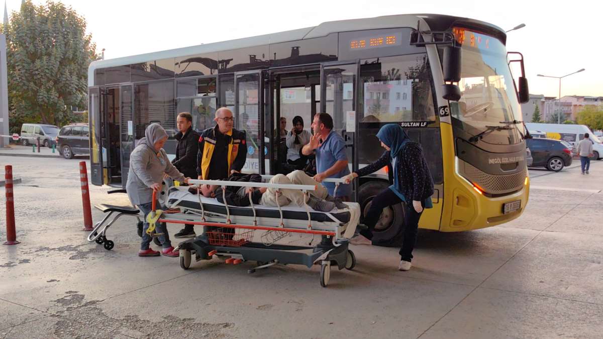 Sağlık ekipleri tarafından sedyeye alınan yolcu, hastanedeki tedavisinin ardından taburcu edildi. Olay anı, otobüsün güvenlik kamerasına yansıdı.