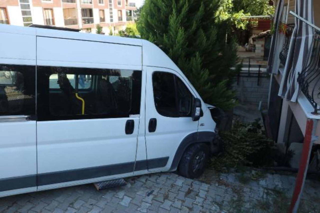 Savrulan minibüs yol kenarındaki evin garajının demir kapısına çarpıp bahçeye girdi.