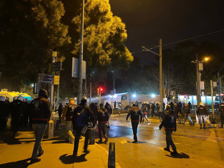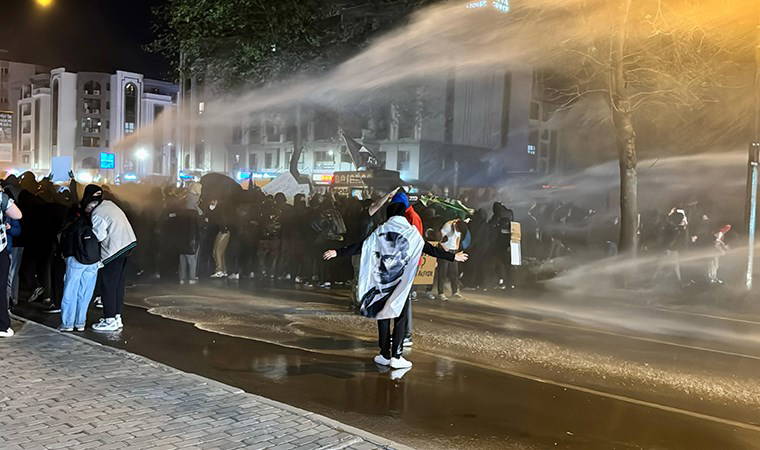 TOMA’lar tazyikli su ve biber gazıyla sert müdahalede bulunan polis birçok gözaltı yaptı.