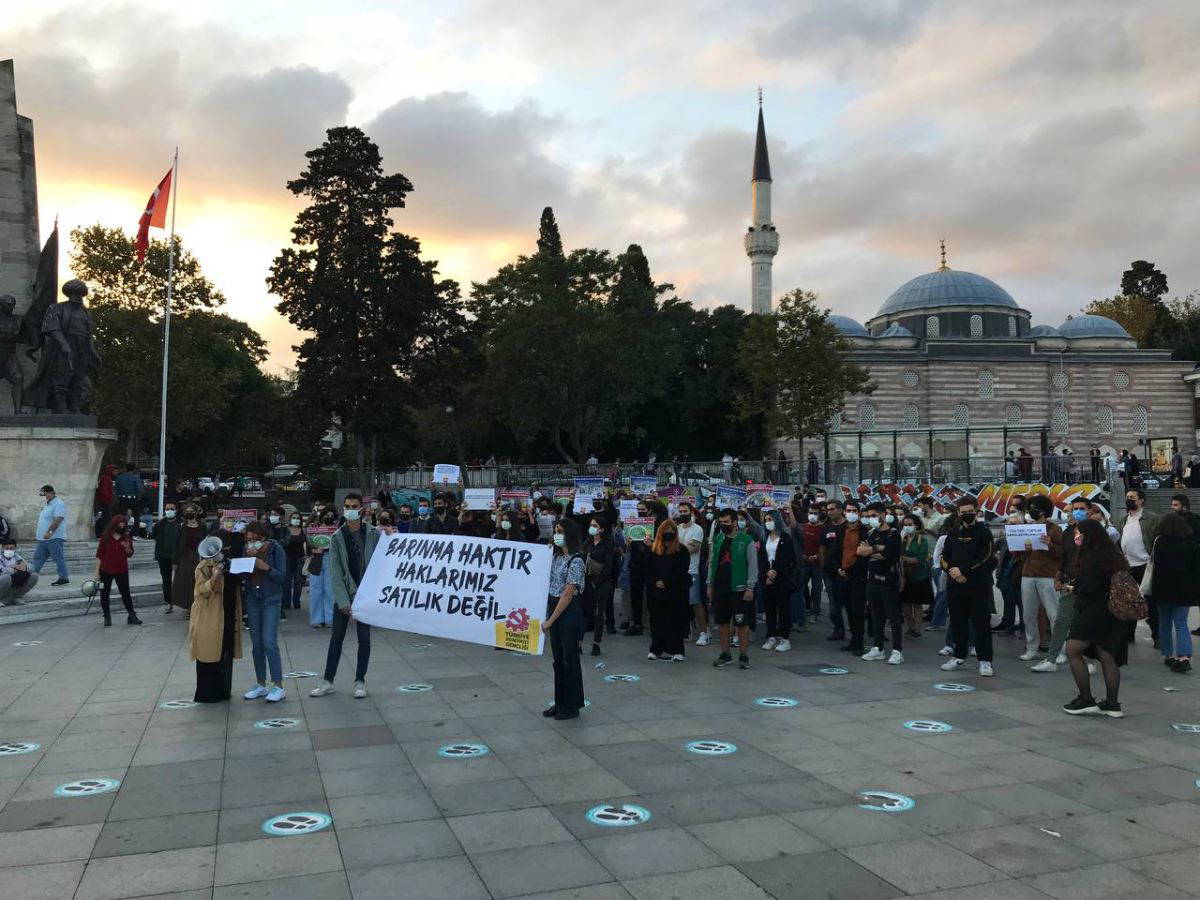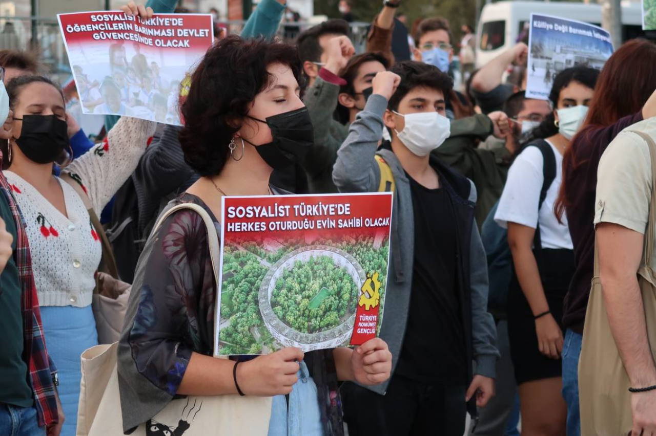 Türkiye Komünist Gençliği’nin çağrısıyla bugün üniversiteliler Beşiktaş Meydanı’nda fahiş oranda artan ev, yurt, apart fiyatları dolayısıyla ortaya çıkan barınma sorununa karşı bir araya geldi.