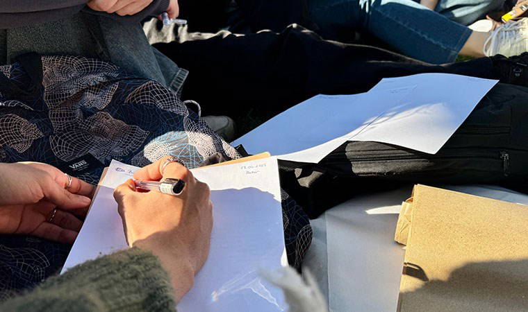 Bornova Büyükpark’ta “Tutsaklarla direniş nöbeti” adı altında toplanan öğrenciler, “Tutsaklara mektup atölyesi”, “Askıda kitap” ve “Pankart atölyesi” düzenledi.