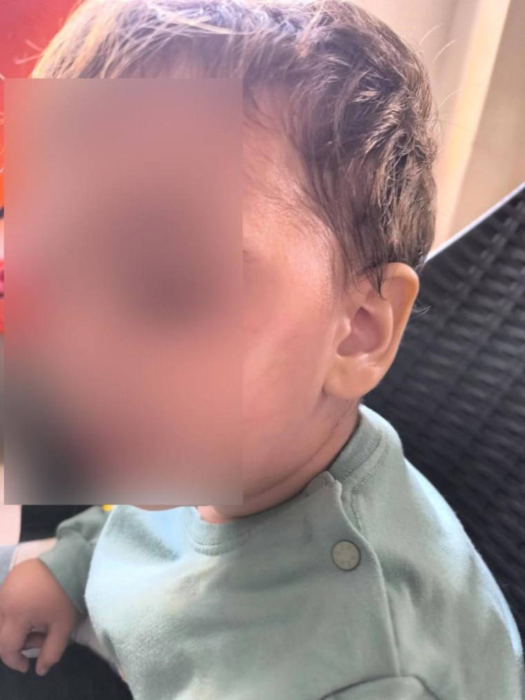 5 dakika sonra zaten eşim gidip oğlumu aldı. Bana fotoğraf attı. Fotoğrafta parmak izi vardı. Ben ona benzettim o zaman biz alıp hastaneye götürdük. Darp raporu aldık. Sonrasında kreşle de görüştüm. Görüntüleri izlettirmelerini söyledim. Uyuyorken baktım sağ tarafında uyuyor. Eli altında kalmamış, darbe aldığı yanak da sol yanak. Ben de onu da belirttim oradakilere. Asla beni ciddiye almadılar.