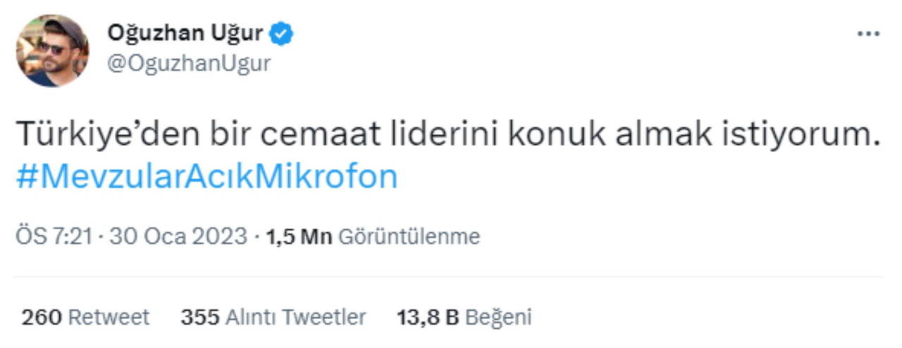 "Türkiye’den bir cemaat liderini konuk almak istiyorum. #MevzularAcıkMikrofon"