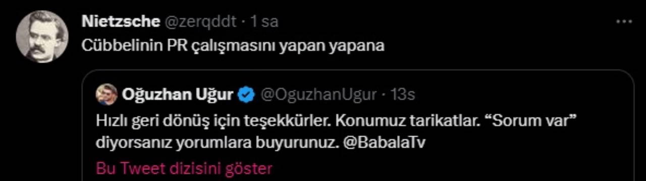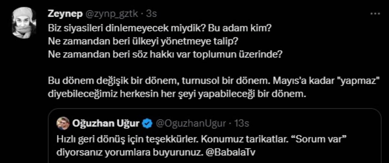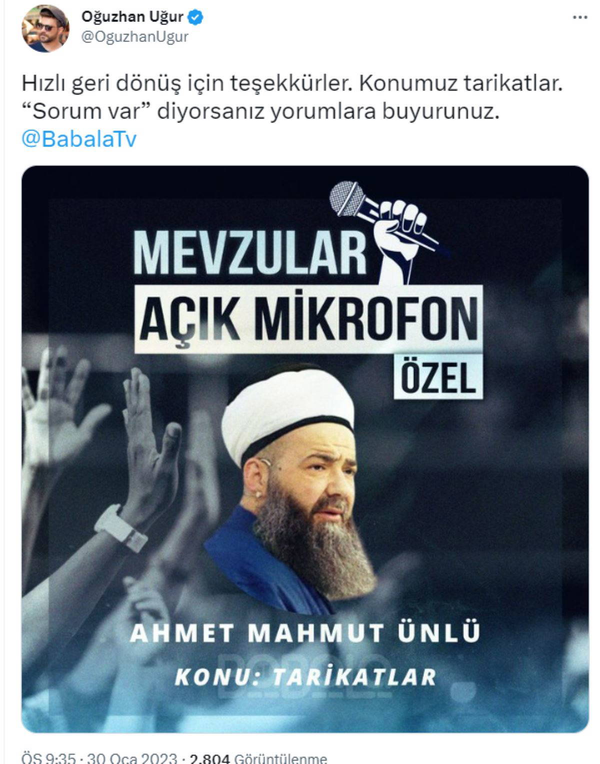 Son dönemde politikacıları YouTube kanalı Babala TV'deki Mevzular Açık Mikrofon programında ağırlayan Oğuzhan Uğur bu kez dikkat çeken bir çağrıda bulundu.