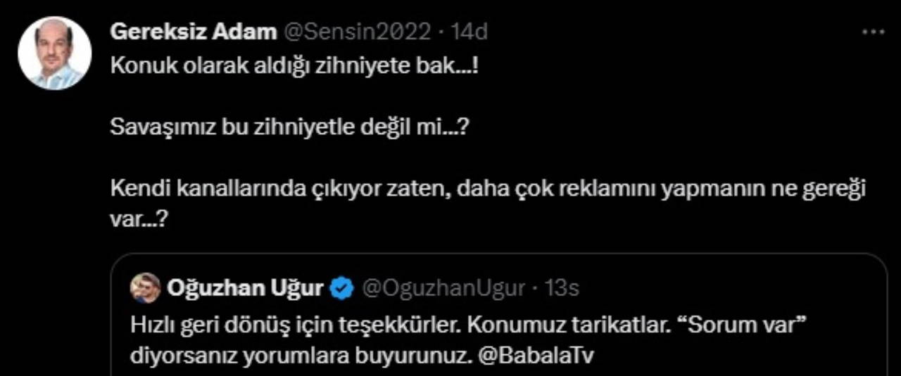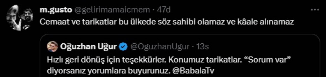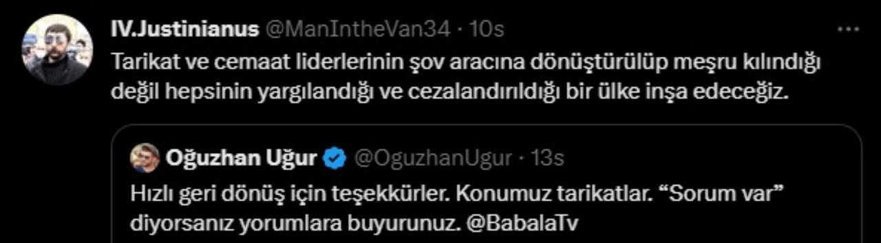 "Hızlı geri dönüş için teşekkürler. Konumuz tarikatlar. “Sorum var” diyorsanız yorumlara buyurunuz."