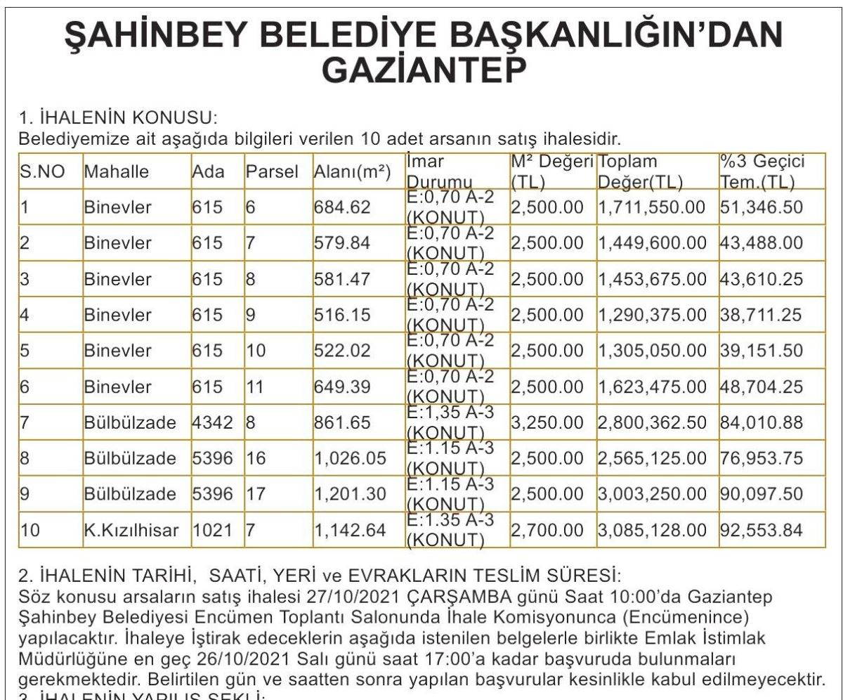 Daha önce Orta Asya Vadisi (Otağlar ve Binicilik Tesisi) Projesi için 60 milyon TL ödenek ayıran AKP'li Şahinbey Belediyesi, bu kez arsa satışları ile gündemde.