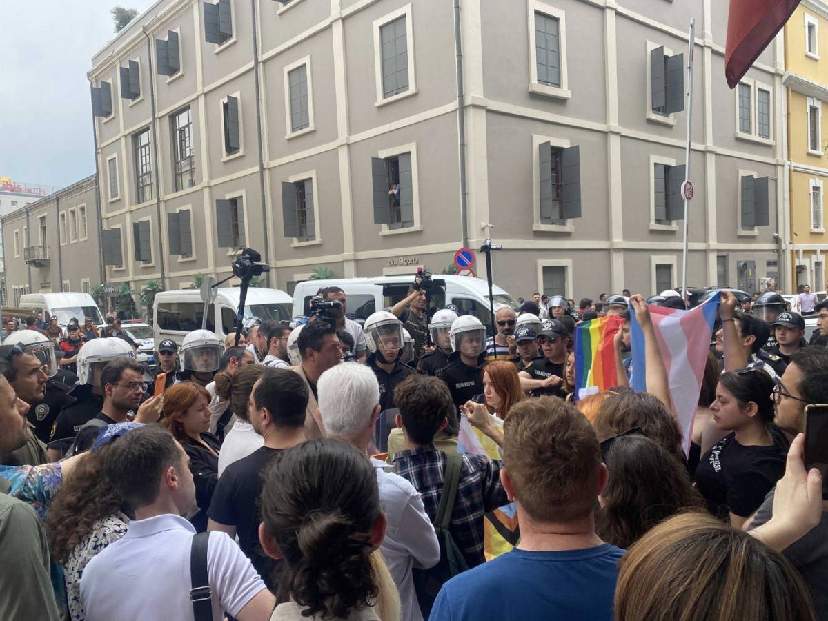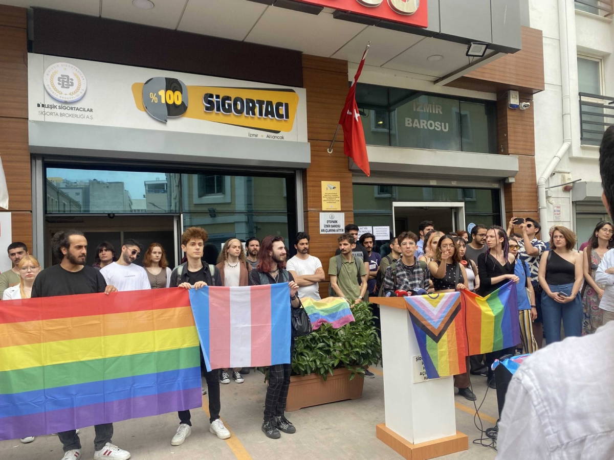 Açıklamada, “Basın açıklamasına izin vermeyen emniyet güçleri, öğrencilere ve orada bulunan yönetim kurulu üyelerimize ve diğer meslektaşlarımıza şiddet uygulamışlar ve biber gazı ile saldırmışlardır. İzmir Barosu LGBTİQ+ Hakları Komisyonu'ndan sorumlu yönetim kurulu üyemiz Av. Gamze Şimşek ile meslektaşlarımızın ve yurttaşlarımızın bir kısmı darp edilmiş, İzmir Barosu Başkan Yardımcısı Av. Zöhre Dalkıran ve diğer katılımcılar biber gazından etkilenmişlerdir” denildi.