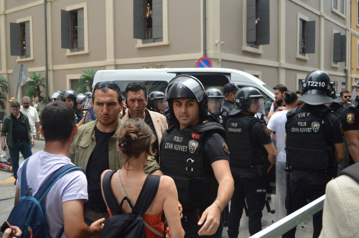 İzmir Barosu önünde açıklama yapacağını duyuran gençlere de polis müdahale etti.