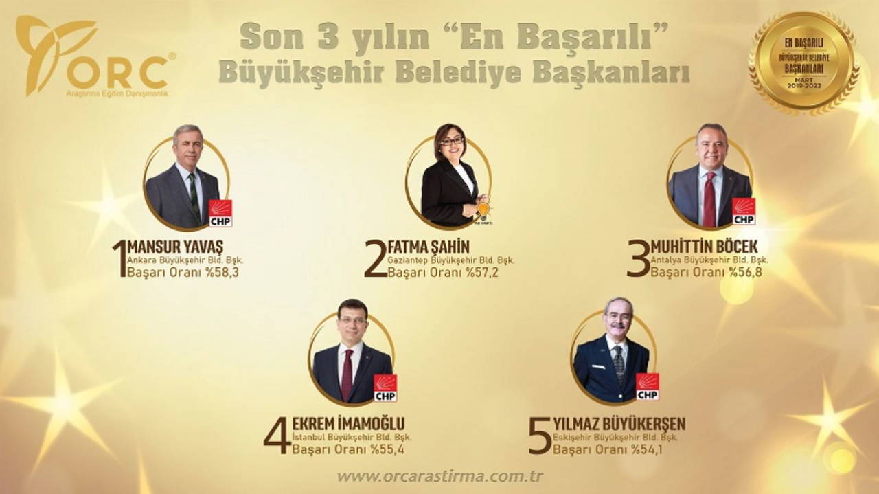 Yurttaşların cevaplarına göre son 3 yılda en başarılı Büyükşehir Belediye Başkanı, Ankara Büyükşehir Belediye Başkanı Mansur Yavaş oldu.