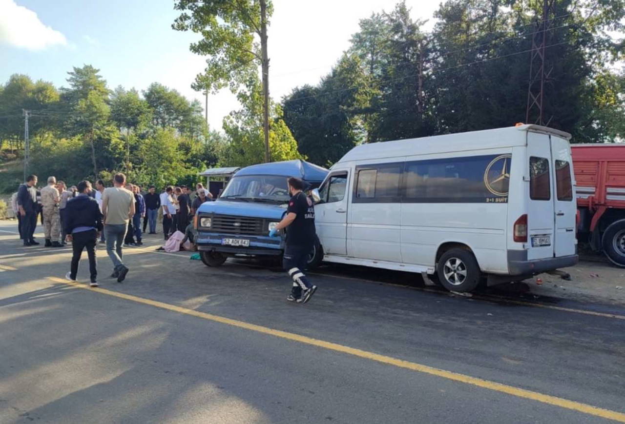 Ordu'nun Gürgentepe ilçesine bağlı Gültepe Mahallesi'nde sürücülerinin kimliği öğrenilemeyen, mevsimlik tarım işçilerini taşıyan 52 ADK 843 plakalı minibüs ile 52 ABM 643 plakalı minibüs çarpıştı.