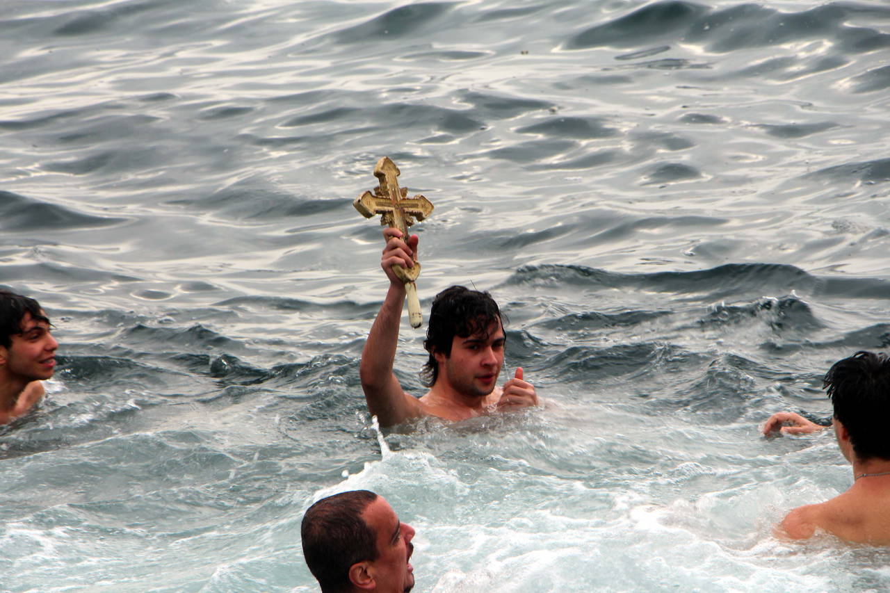 Denize atlayanlardan 16 yaşındaki Nikolas Özdoğan haçı denizden ilk alan kişi oldu.