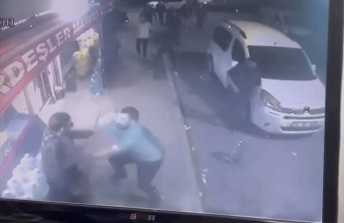 Tartışmanın büyüyerek kısa sürede kavgaya dönüşmesiyle, taraflar birbirlerine falçata, damacana, süpürge, tekme ve yumruklarla saldırdı. Tarafların kavgası sokağa taşarak, bir marketin önünde devam etti. Sesleri duyan market sahibi Ercan Arıt, dışarı çıkarak kavgayı ayırmak istedi.