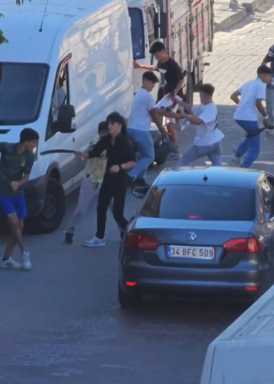 Çevredeki bir kişi duruma müdahale ederek her iki tarafı olay yerinden uzaklaştırmaya çalıştı. Bu sırada taraflardan biri, kavga ettiği kişiye ait motosiklete tekme atarak yere düşürdü. Taraflar yeniden kavgaya tutuştu.