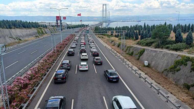 Yoğunluk köprünün Kocaeli'den Yalova'ya gidiş yönünde görülürken, Yalova'dan Kocaeli istikametine geliş yönünde trafik akıcı ilerliyor.