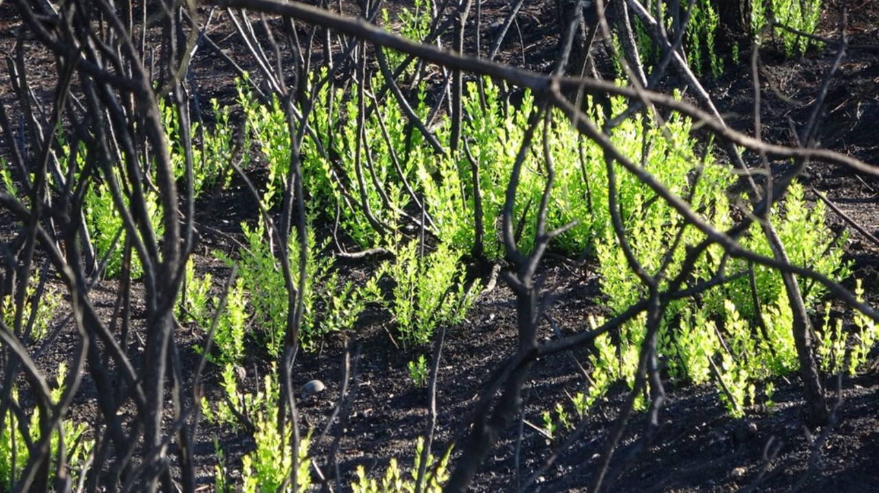 Yangının ardından etkili olan yağışlarıla birlikte birçok bitki ve ağaç türüne ait filizler küllerin arasından çıkarak yeniden doğuşun simgesi oldu. Felaketin rengi siyah, yeşile boyanmaya başladı.