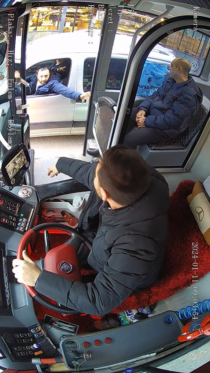 Büyükşehir Belediyesi'ne ait 16 M 00100 plakalı otobüsün şoförü Mustafa Semiz, hat güzergahındaki bir durağa park edilen hafif ticari araç nedeniyle durağa yanaşamadı.