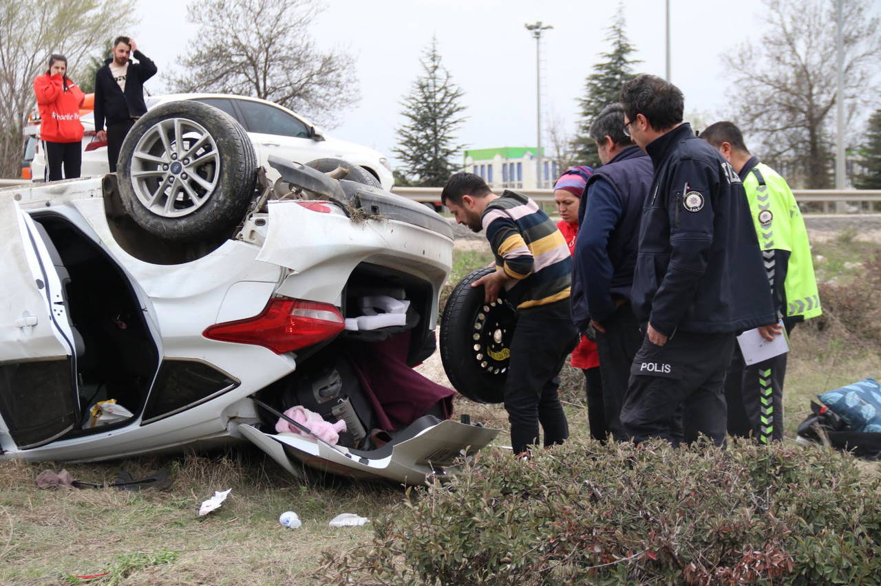 Kazada ters dönen otomobilin sürücüsü Çalışkan ile 1'i bebek 6 kişi yaralandı.