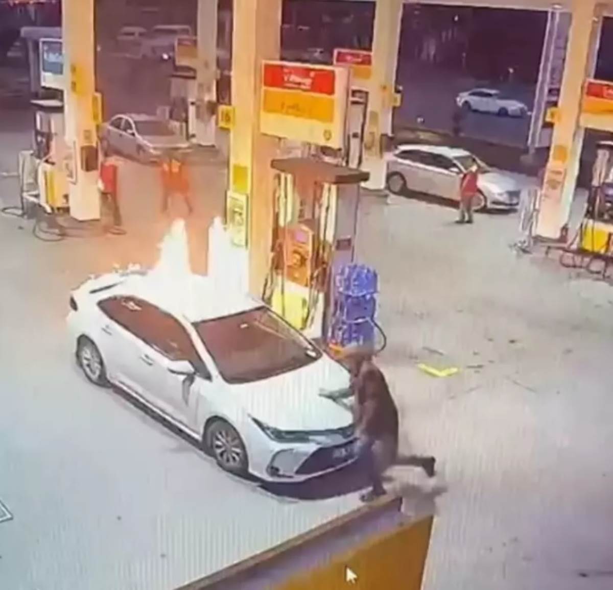 Öte yandan, korku dolu o anlar ise akaryakıt istasyonunun güvenlik kamerası tarafından kaydedildi. Yangının çıkış nedeninin belirlenmesi için inceleme başlatıldı.