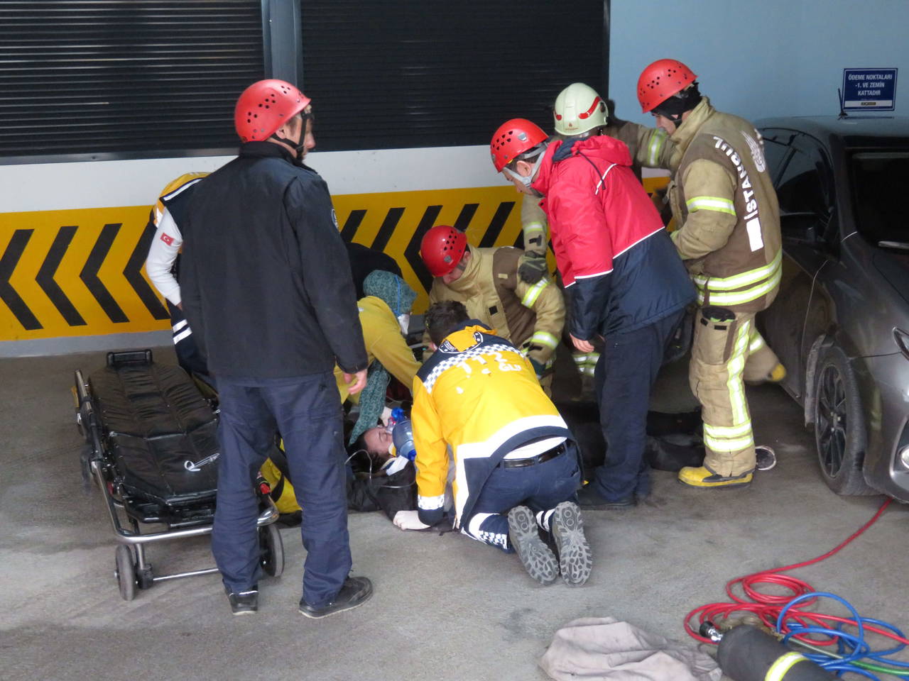 Ümraniye'de zemin altı otoparktan çıkarken kartı okumadığı için aracından inen sürücü, geri kayan otomobilinin altında kaldı. Metrelerce sürüklenen sürücüyü sıkıştığı yerden itfaiye ekipleri kurtardı. Sürekli kalp masajı yapılan yaralı hastaneye kaldırıldı.