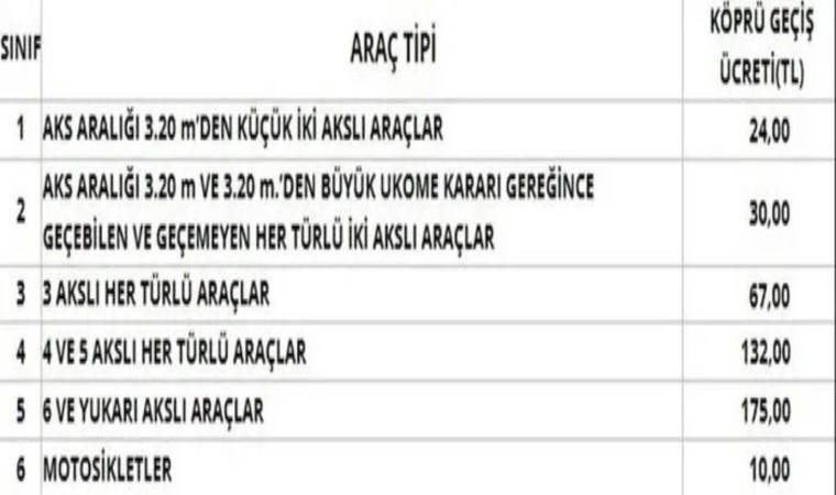 HANGİ KÖPRÜLERE ZAM GELDİ? ZAMLI KÖPRÜ FİYATLARI NE KADAR OLDU?