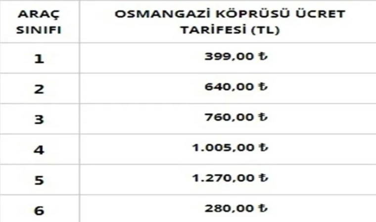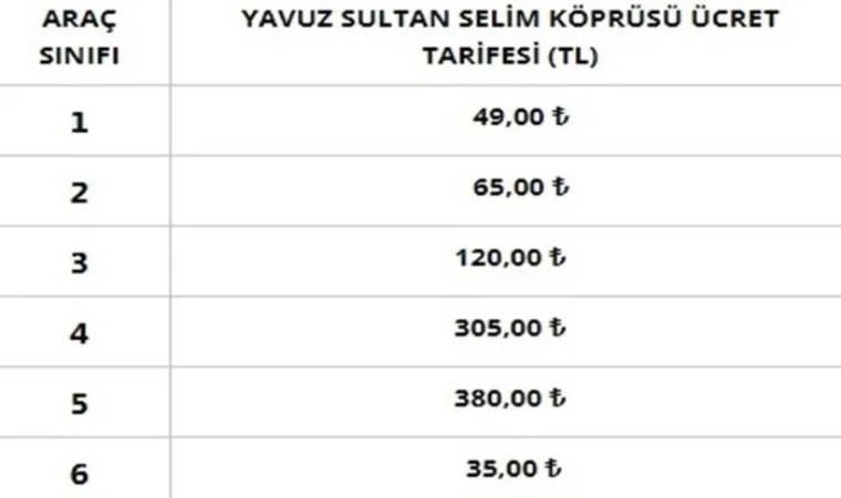 Yavuz Sultan Selim Köprüsü’nden geçiş ücreti 35 TL’den 49 TL’ye, Osmangazi Köprüsü’nden geçiş ücreti 290 TL’den 399 TL’ye çıktı.