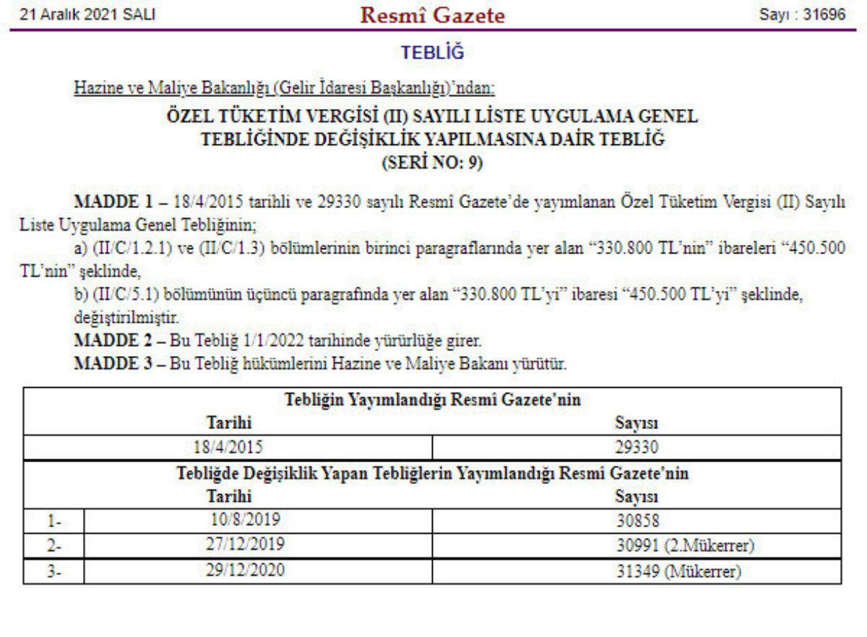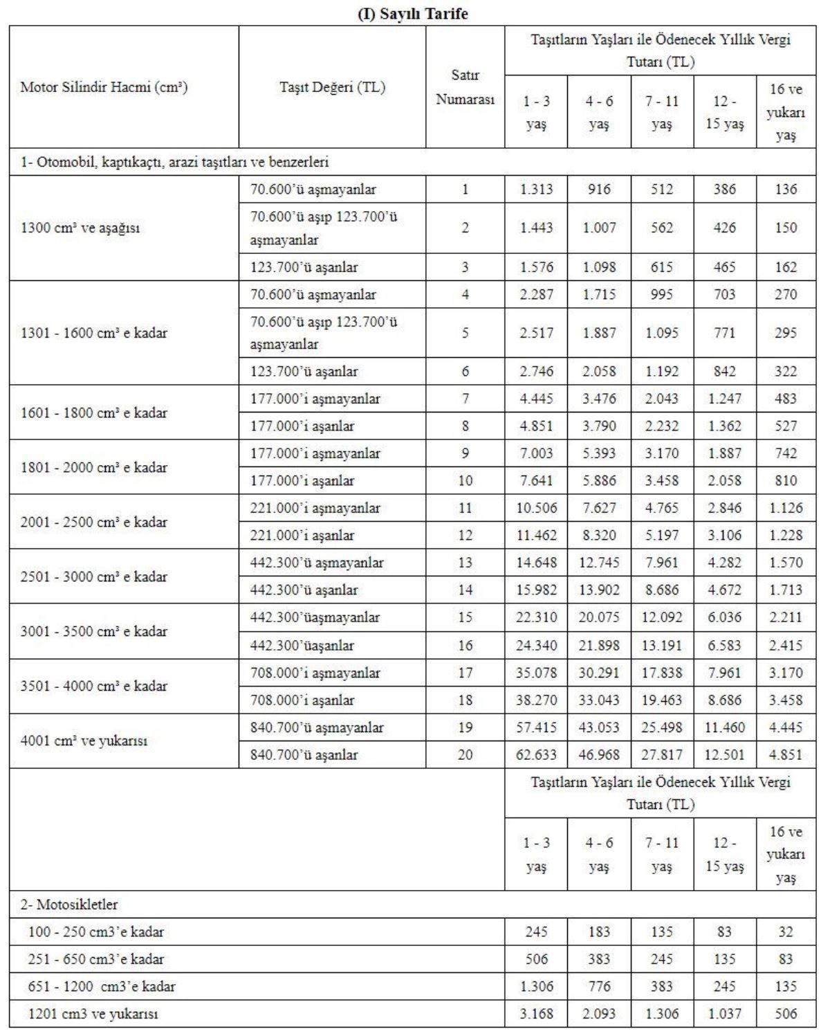 Resmi Gazete'de yayımlanan tebliğe göre motorlu taşıtlar vergisine de yüzde 25 oranında zam yapıldı.