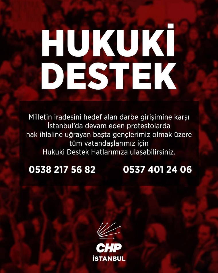Cumhuriyet Halk Partisi (CHP) İstanbul İl Başkanı Özgür Çelik, üniversite öğrencilerinin Şişli'de sert polis müdahalesine maruz kalması ve gözaltına alınmasının ardından, partinin hukuki destek numaralarını paylaştı.