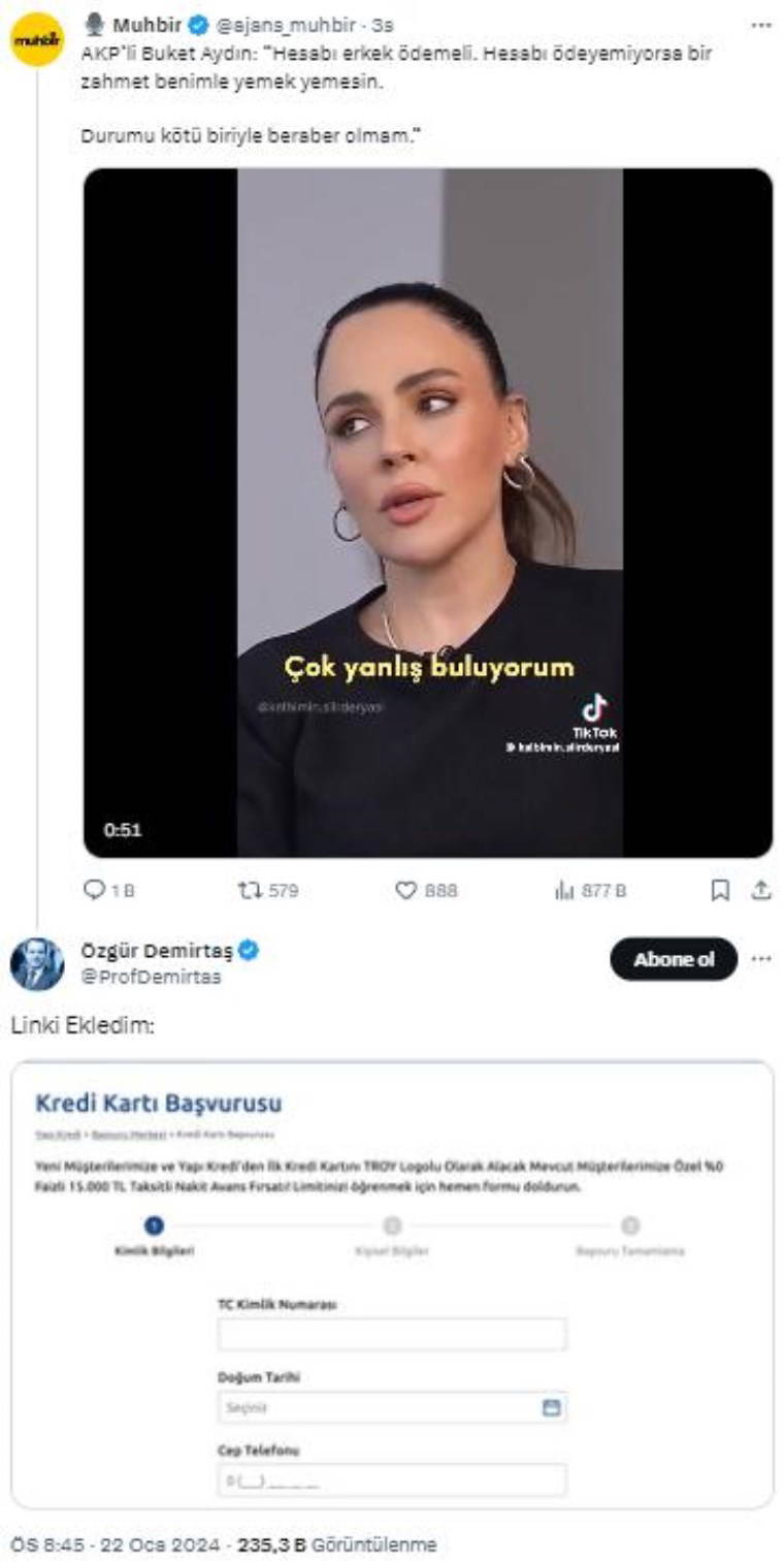 Bu açıklamaların paylaşıldığı bir hesabın altına yorum yapan ekonomist Prof. Dr. Özgür Demirtaş, "kredi kartı başvuru" ekran görüntüsü paylaştı.