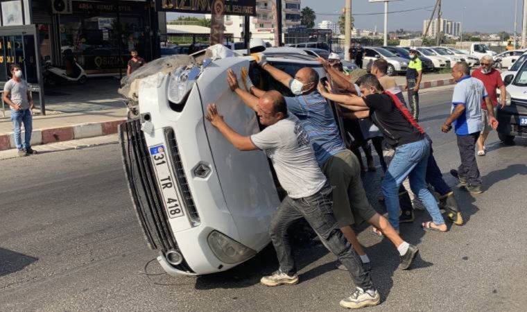 Kaza, Mersin-Antalya D400 karayolunda Erdemli ilçe merkezinin girişinde Alparslan Türkeş Bulvarı’nda meydana geldi. Alınan bilgiye göre, sürücüsünün direksiyon hakimiyetini kaybettiği 31 TR 418 plakalı otomobil, park halindeki 33 D 0293 plakalı araca çarptı. Çarpmanın etkisi ile otomobil devrildi, sürücü ise yara almadan kurtuldu.