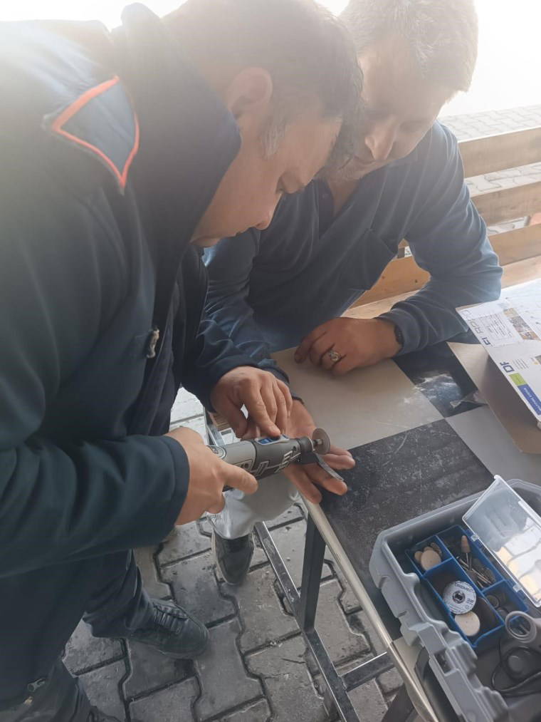 İhbar üzerine yurttaşın yanına gelen itfaiye ekipleri yüzüğü çıkartmak için çalışma başlattı.