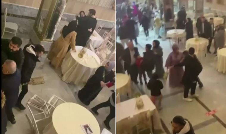 Düğün salonu içerisinde ve salonun girişinde yaşanan arbede anları cep telefonu kamerasına yansıdı.