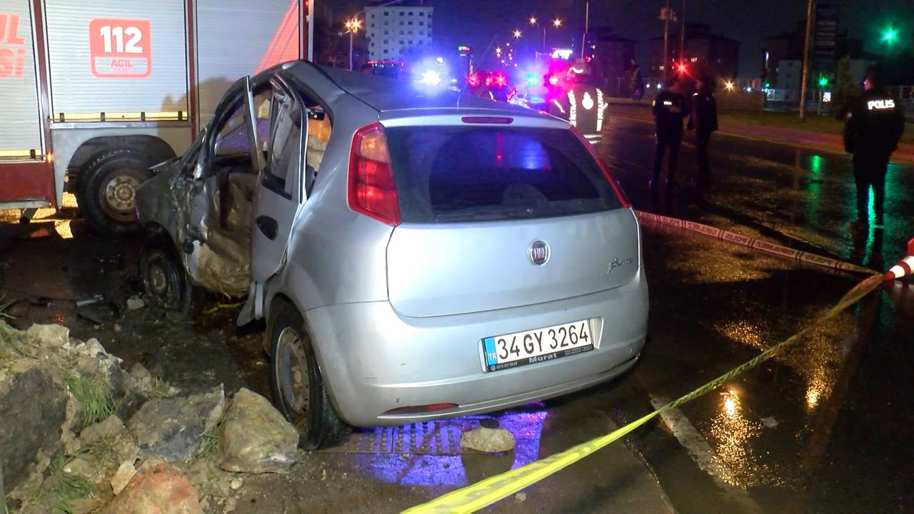 İddiaya göre, 34 GY 3264 plakalı otomobil sürücüsü Semih Çalışkan, ıslak zeminde direksiyon hakimiyetini kaybederek yol kenarında bulunan bir evin bahçe duvarına çarptı.