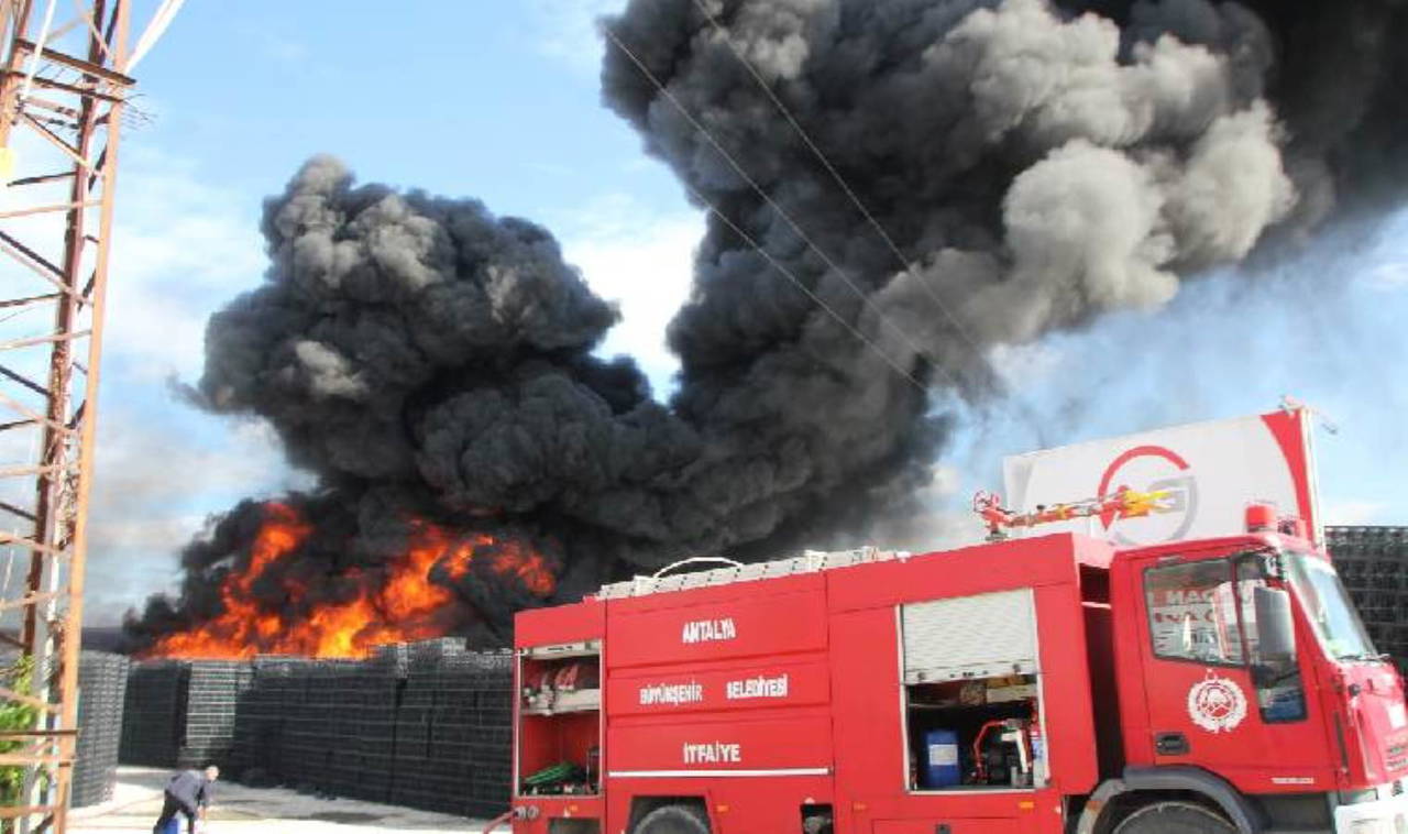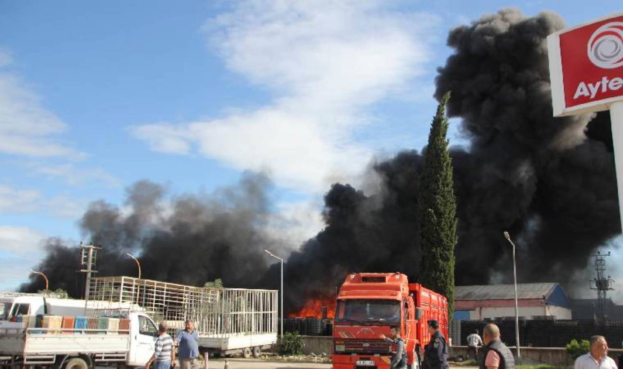 Antalya'nın Serik ilçesine bağlı Çandır Mahallesi'nde plastik kasa ve ambalaj üretiminin yapıldığı fabrikanın bahçesinde kasaların bulunduğu alanda, bilinmeyen bir nedenle yangın çıktı.