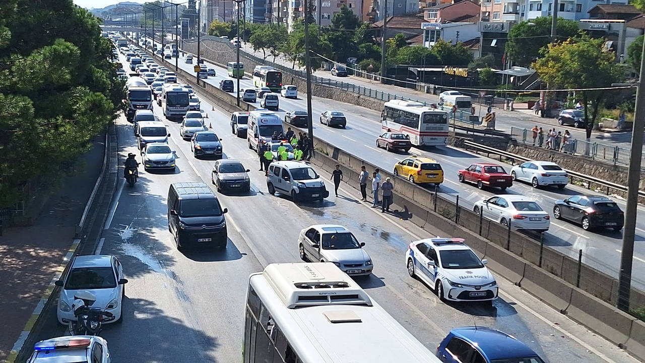 Kaza nedeniyle yolun 1 şeridi trafiğe kapatılırken araç geçişleri kontrollü olarak sağlandı.