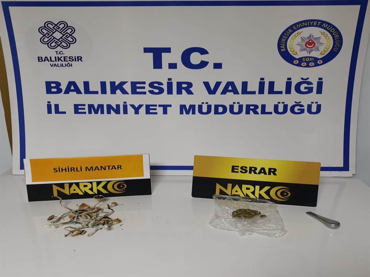 Kokainden 10 kat daha fazla etkili ve kuvvetli halüsinasyon etkisi oluşturan 12,6 gram sihirli mantar ile yaklaşık 10 gram da esrar bir adet uyuşturucu kullanım aparatına el konuldu.