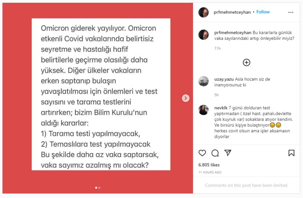 Ceyhan, "Bu kararlarla günlük vaka sayılarındaki artışı önleyebilir miyiz?" notunu düştüğü paylaşımda şu ifadeleri kullandı: