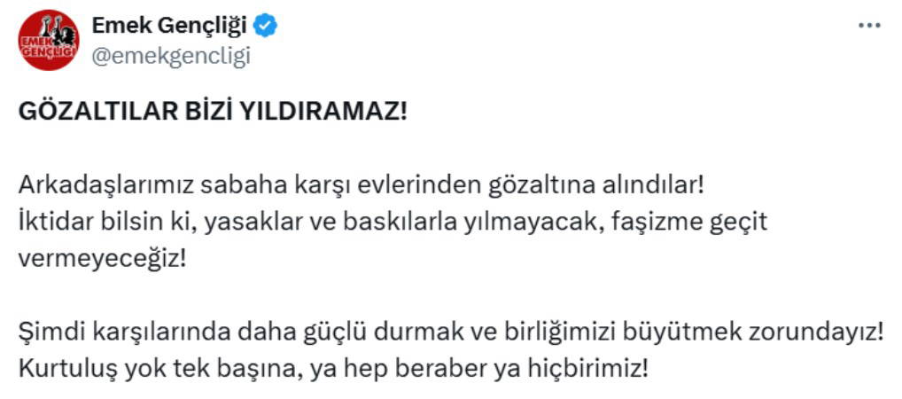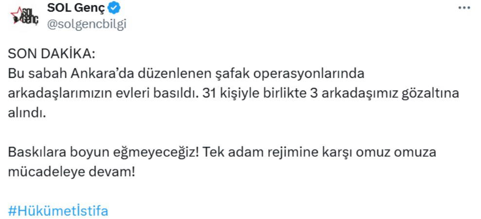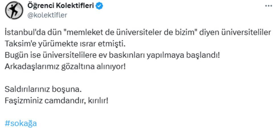 Ancak eylemler nedeniyle bu sabah öğrencilere yönelik şafak operasyonu yapıldı. Öğrenci topluluklarının sosyal medya hesabından yapılan paylaşımlara göre; İstanbul, İzmir ve Ankara'da birçok üniversite öğrencisi evinden gözaltına alındı.