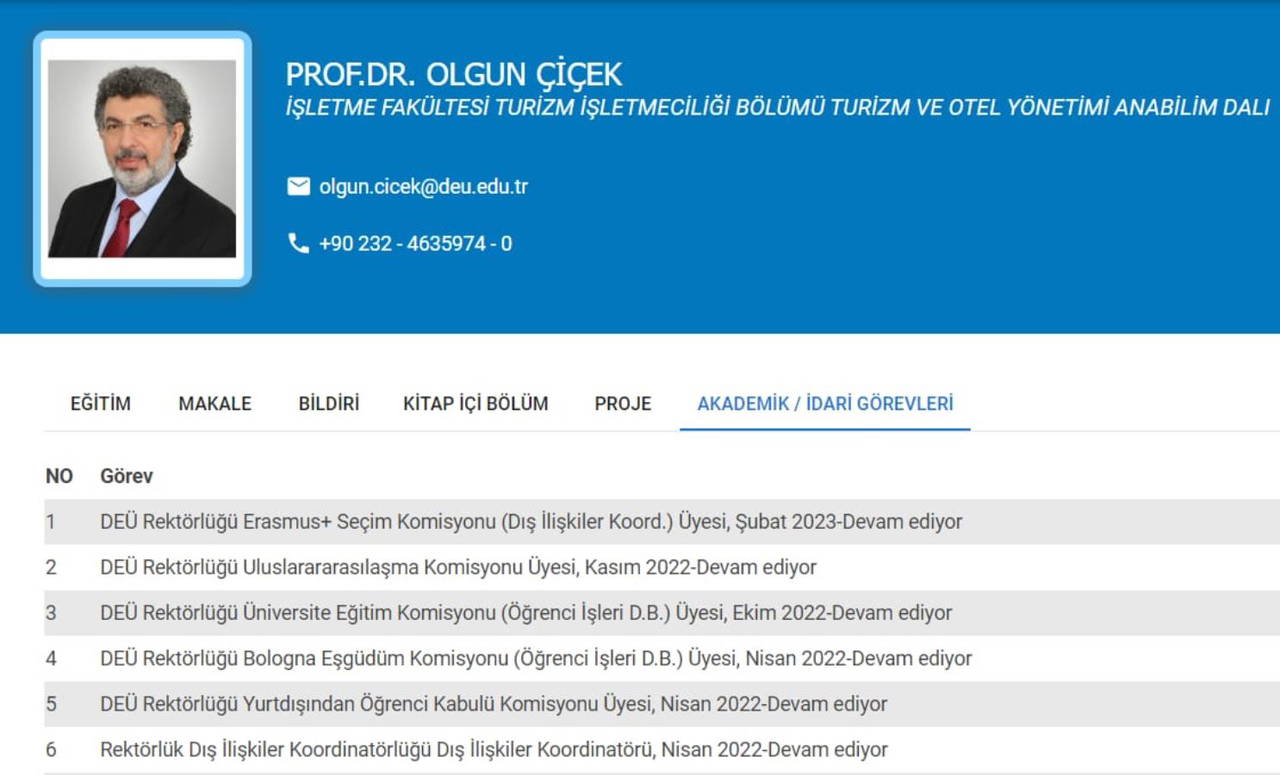 AKP’li rektör Fatma Seniha Nükhet Hotar tarafından kurum dışından getirilerek aynı zamanda Dış İlişkiler Koordinatörü olarak atanan Olgun Çiçek’in üniversitenin resmi açık erişim sayfasından 2022-2023 Güz Dönemi ve 2022-2023 Bahar Dönemi boyunca da zorunlu ders görevlerini dahi yerine getirmediği görüldü. Atila Sertel, Çiçek’in haftalık 10 saat asgari ders verme yükümlülüğünü yerine getirmemesine rağmen maaş aldığı, hukuka ve yükseköğretim mevzuatına aykırı olduğu bilinen bu uygulamanın Sayıştay denetimine rağmen bilerek devam edildiği iddialarını da sordu. Çiçek’in Dokuz Eylül Üniversitesi Akademik Özgeçmiş sistemlerine gerçeğe aykırı yayın bilgileri girdiği ve bunları atama/yükseltme başvurularında kullandığı iddiasını da dile getiren CHP’li vekil, Çiçek hakkındaki kadro talebinin Turizm İşletmeciliği Bölüm Başkanlığından İşletme Fakültesi Dekanlığına, dekanlıktan ise Üniversite Senatosuna nasıl gönderildiği, neden ve nasıl onaylandığını sordu.