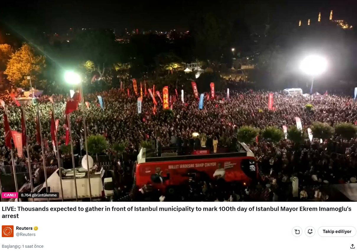 İngiliz haber ajansı Reuters, Saraçhane'deki mitingi canlı yayınladı.