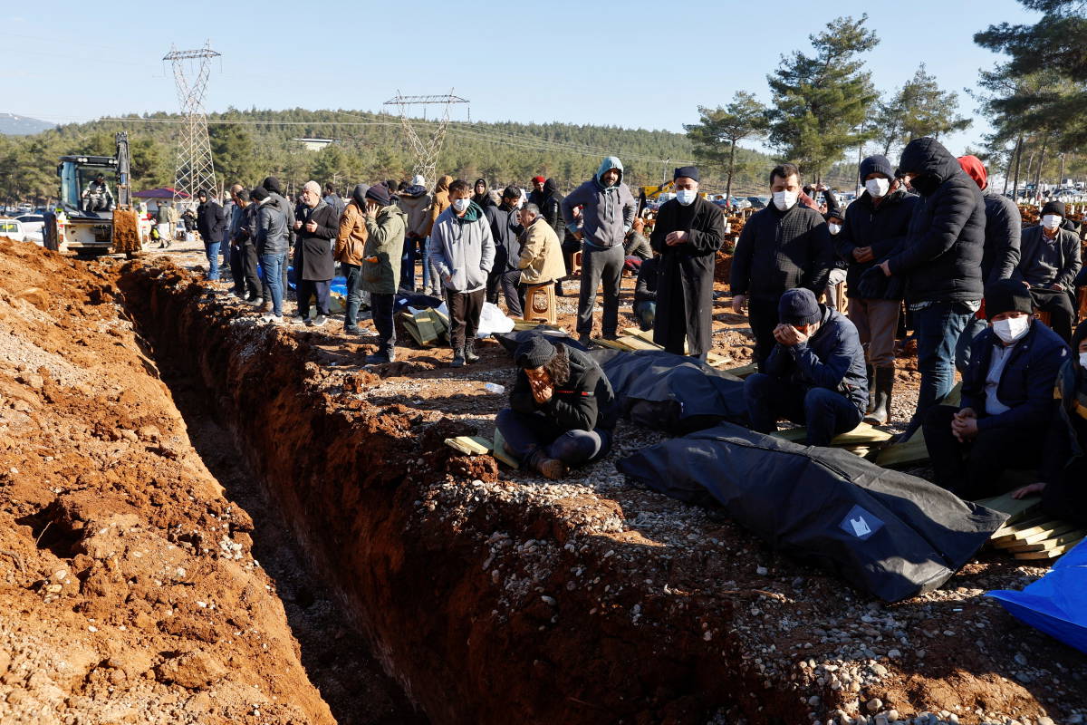 Depremde yaşamını yitirenler, Kahramanmaraş'ta son yolculuklarına uğurlanırken defin fotoğrafları yürekleri yaktı. Reuters haber ajansı tarafından servis edilen fotoğraflarda, mezar yerlerinin iş makineleri tarafından açıldığı görüldü.