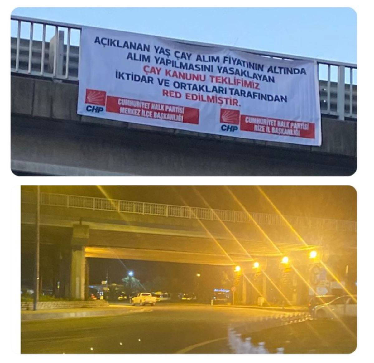Sözcü'den İsmail Akduman'ın haberine göre, Rize İl Başkanlığı, çay kanununun TBMM’de kabul edilmemesine tepki olarak hazırladığı “Açıklanan yaş çay alım fiyatının altında alım yapılmasını yasaklayan Çay Kanunu teklifimiz iktidar ve ortakları tarafından ret edilmiştir” yazılı afişleri kent genelinde ve ilçelerde köprü ve billboardlara asmak istedi. Billboardlara afiş asılmasına izin verilmezken, çeşitli yerlere asılan afişlerde polisler tarafından indirildi.