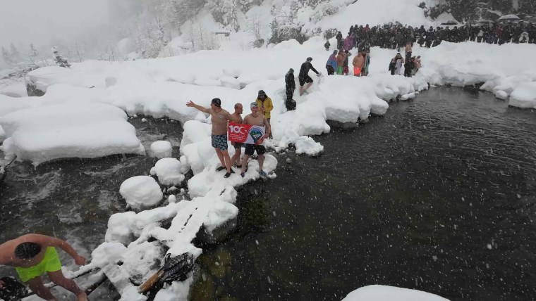 Suya girince vücudun alıştığını ifade eden Ömer Yılmaz, "Su gayet sıcak. Ben her sene deneyimliyorum. Kar yağışıyla beraber daha güzel oldu. Suya girdikten sonra vücut daha dinç oluyor” ifadelerini kullandı.