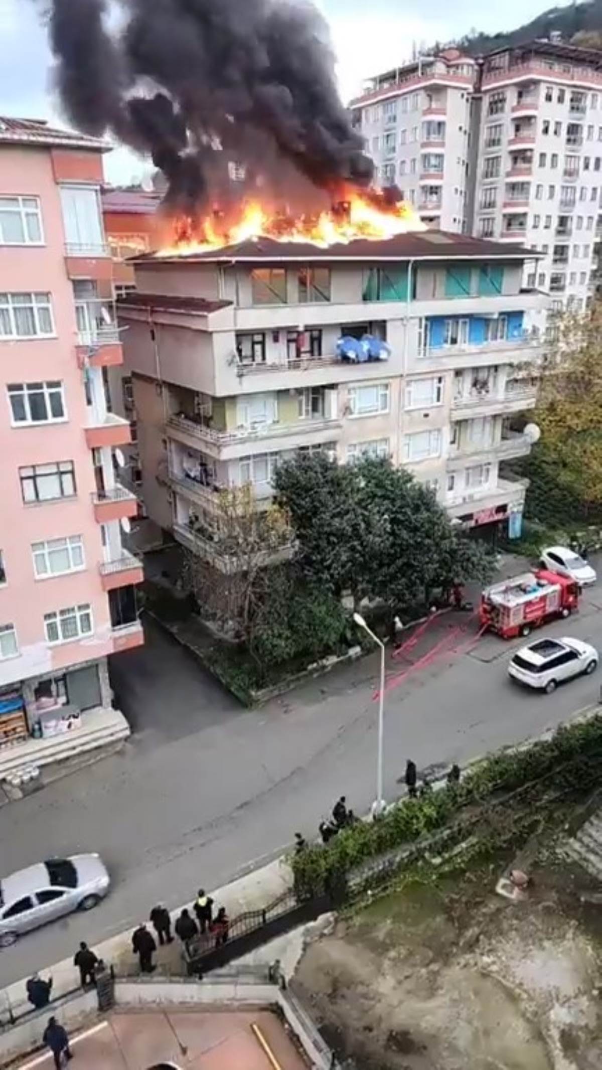 Rize'de Taviloğlu Sokak’ta saat 08.00 sıralarında 5 katlı bir binanın çatı katında yangın çıktı.