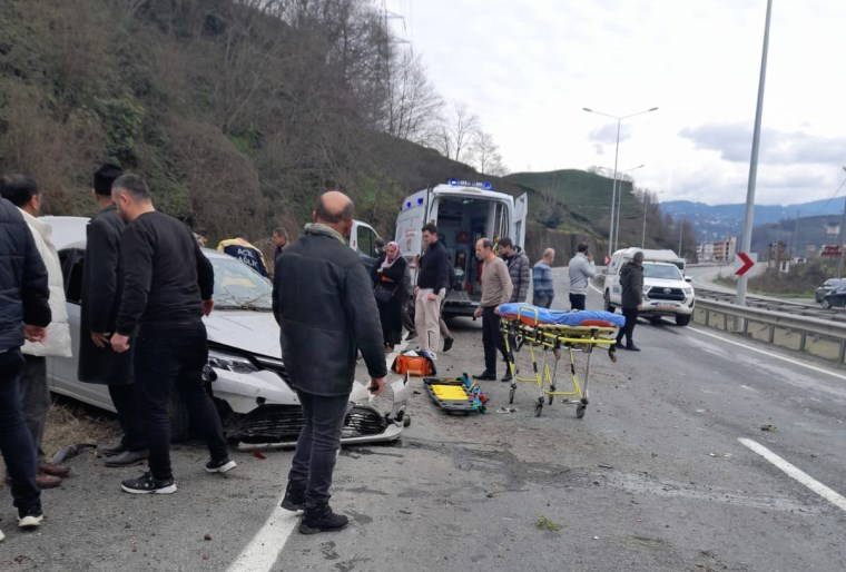 Yoldan geçen diğer sürücüler durarak ambulans ve jandarmaya haber verirken, araçta bulunan yabancı uyruklu 2 kişi ambulansla Rize Devlet Hastanesi'ne kaldırıldı.