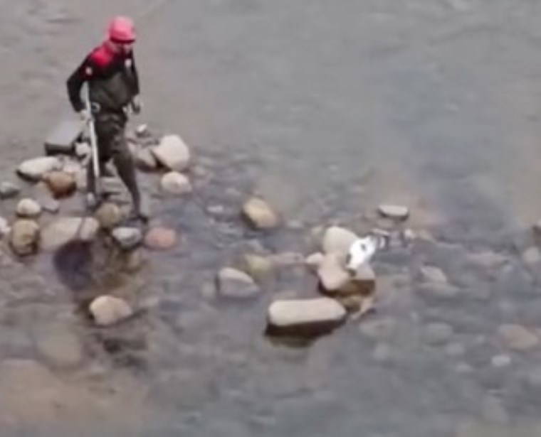 İhbar üzerine bölgeye itfaiye ekipleri sevk edildi. İtfaiye eri, deredeki taşın üzerinde mahsur kalan kediyi kurtarmak için merdivenle aşağı indi. Balıkçı kepçesiyle yakalanan kedi, dereden çıkarıldı.
