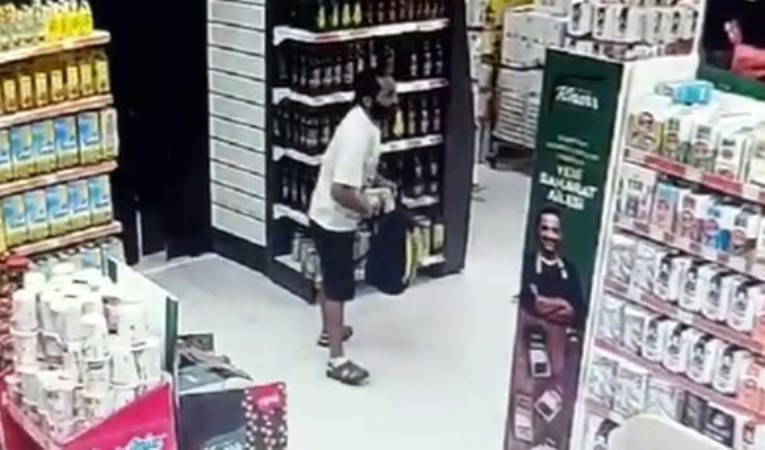 Aynı şüpheli, aynı gün bölgedeki bir markete de giderek, raflardaki ürünleri ceplerine doldurduktan sonra ödeme yapmadan kaçtı.