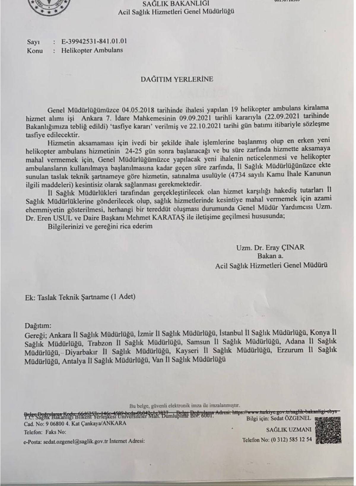 Sağlık Bakanlığı Ambülans helikopter hizmeti aldığı THK alt şirketi Gökçen Havacılık’ın tasfiyesine karar veren Ankara 7. İdare Mahkemesi kararını dayanak göstererek Ambülans helikopter hizmetini durdurdu pic.twitter.com/P2RnSCgDzh